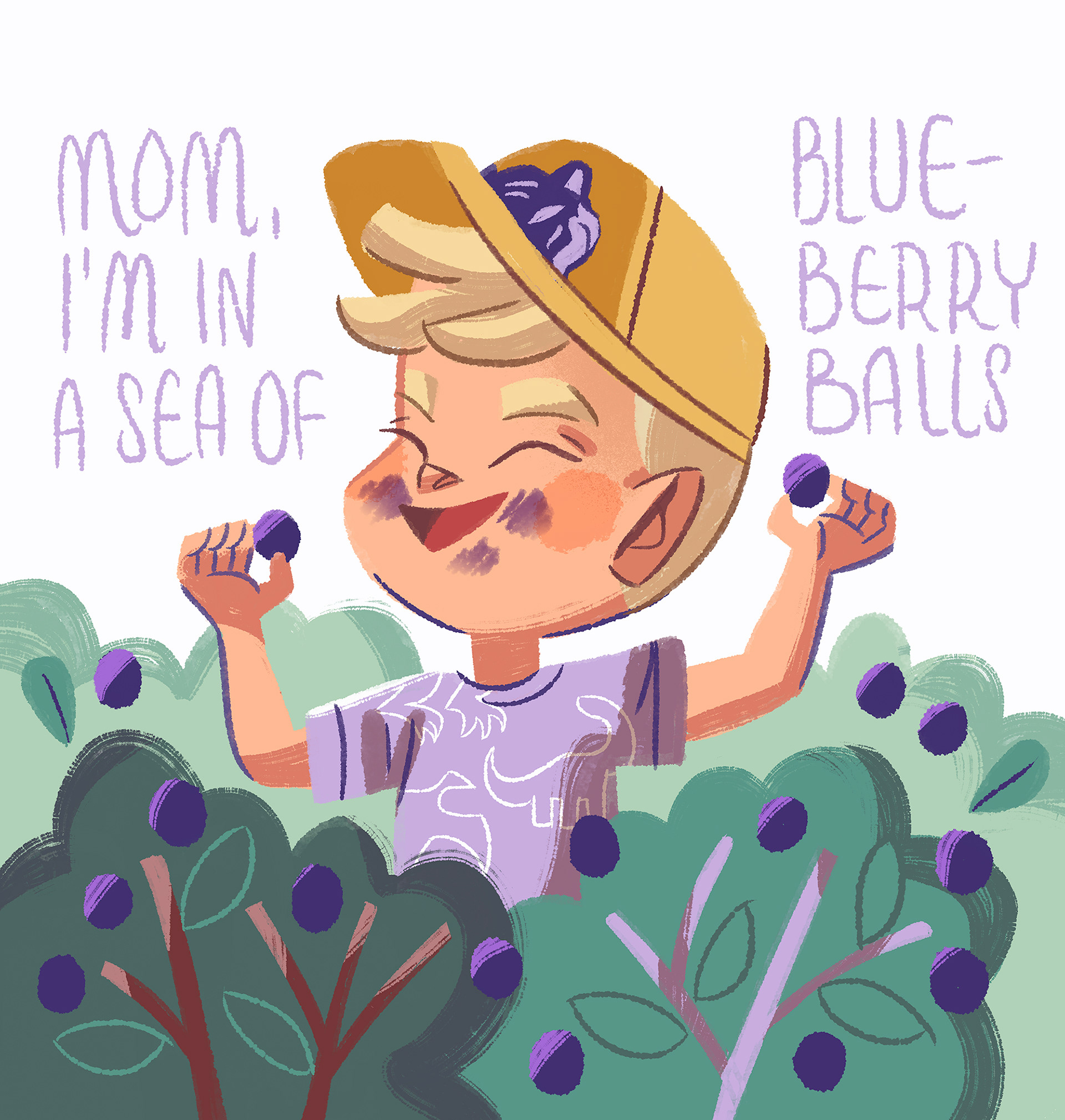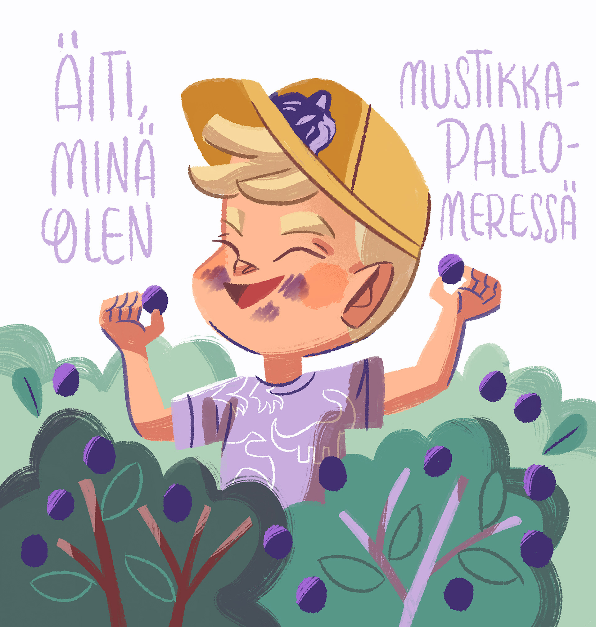 I had to illustrate this funny quote said by our 3-year-old son while we where biking at the forest full of blueberries. Personal work (2024)
