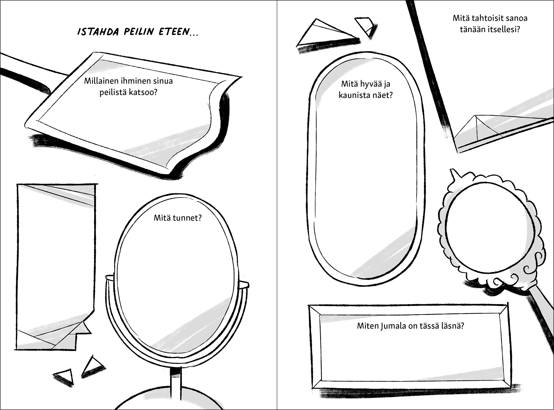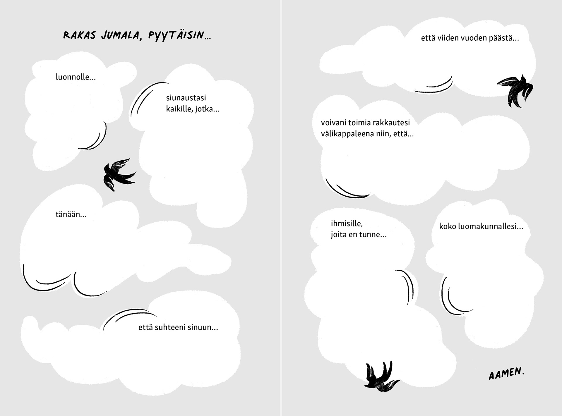 Cover design, layout design and illustrations for the book Luomiskirja. Client: Kirjapaja (2023) Author: Mio Kivelä